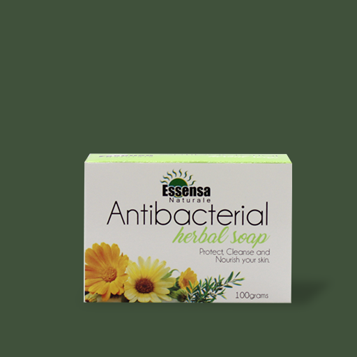 - Essensa Naturale Antibacterial Soap is a powerful ally in the fight against bad bacteria and common germs that causes infections and skin diseases. It is a natural antibacterial soap that contains the active ingredients Tea Tree Oil and Calendula Oil that protects you and your family from harmful germs. In addition to being a natural way to kill germs, what makes this soap special is that it is made with nourishing ingredients, Hyaluronic Acid and Vitamin E Oil for the skin feeling soft and smooth, and retain moisture to help protect against dry skin.